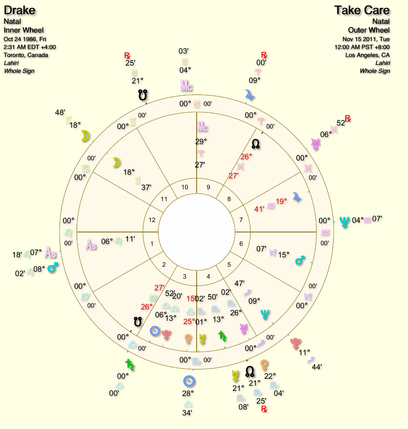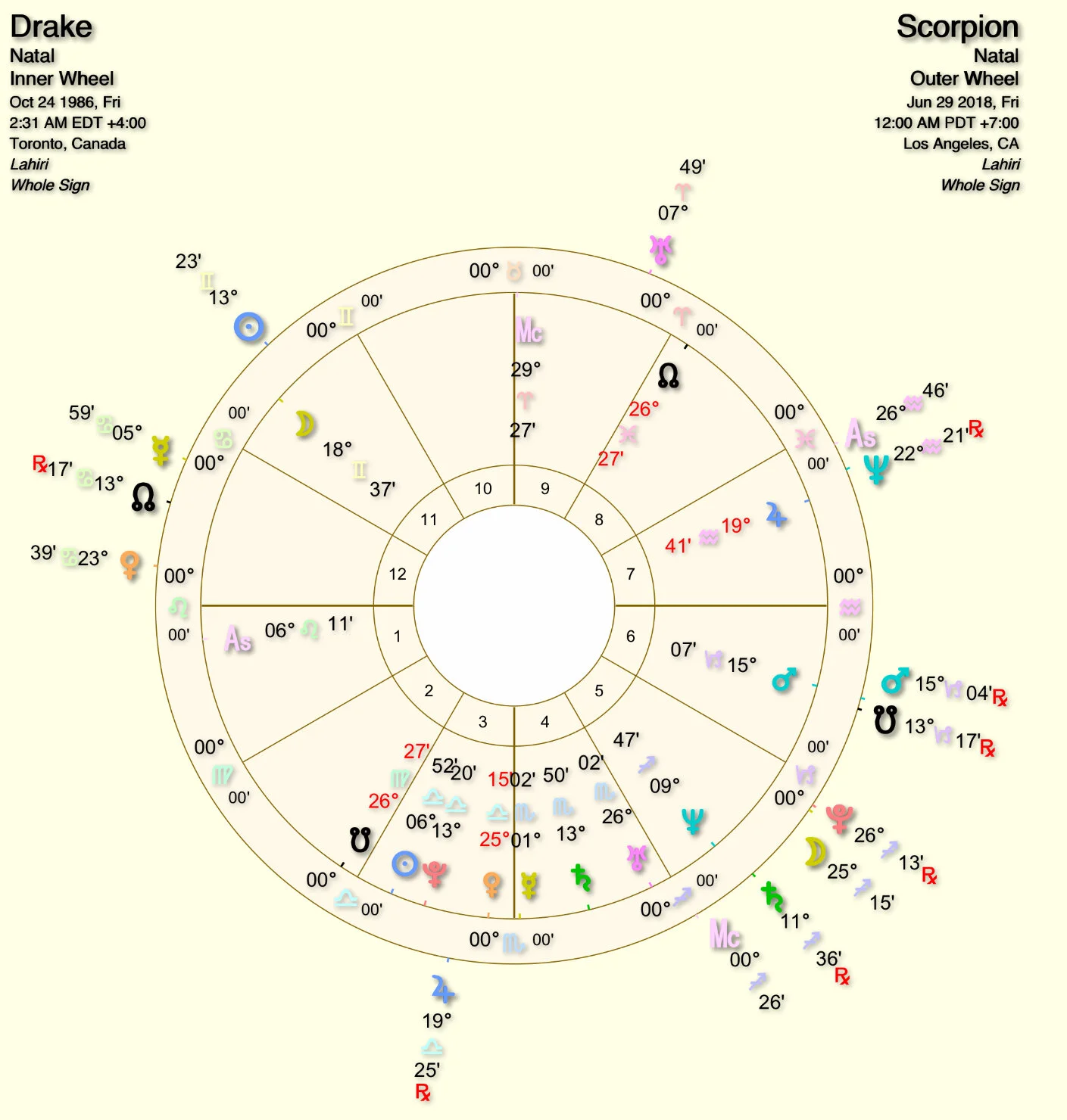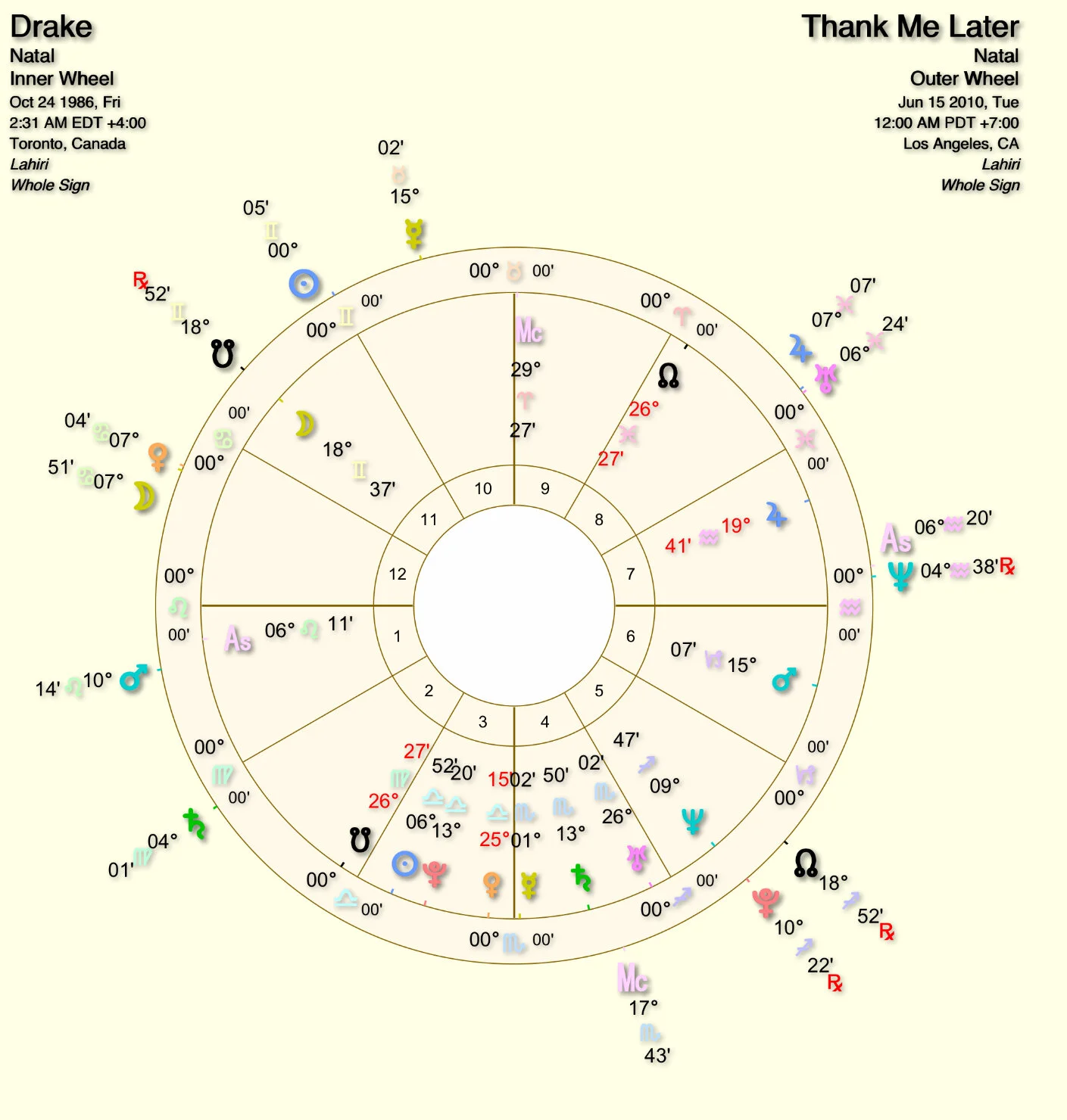 Let’s start with his birthplace. Toronto, the 6ix. Six is Venusian ruled in Numerology. We hear this tag as a drop on his music (Six, six, six) and that actually compliments his energy very well, as he is a Sidereal Libra Sun and Venus. The most interesting thing about how he got famous is that it was through social media specifically, MySpace! Drake is an Ardra Moon, which is also Rahuvian ruled. We can say Drake is pretty much an internet sensation, so him taking off on social media helped him build connections he made by transferring his online presence to the physical world. He was doing this during a time where many were trying to make it. Being in the digital world, especially being from Toronto, where there was no attention to the city back then, was huge! His connections brought him to where he is now. He made people want to live in Toronto, making it enjoyable, which is very Venus in nature. It really feels like it was his birthright to make the city as great as it feels for him. Sharing his home in his music.