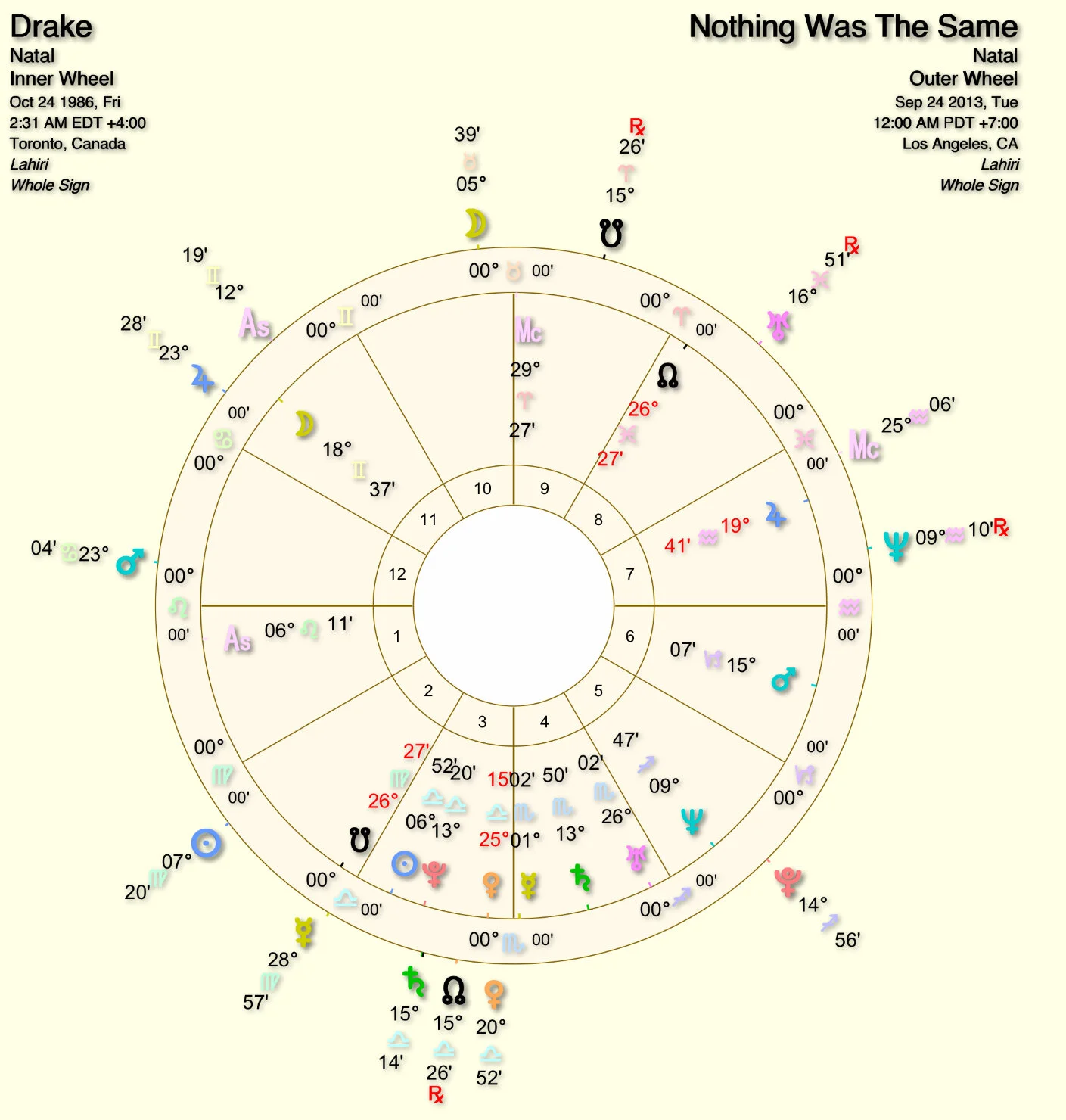 Now there’s a reason why he was memed so much during 2013. He was having his 3H profected year which is all social in nature. This is why the “Drake Lean” was making its rounds in 2013, and why everyone was duping the Album Cover a LOT. His Album Artwork (Venus 3H) is constantly memed, even on Views! Reason why Drake is so memeable is because of his 3H stellium, which is social media ruled. He was also having his Venus return, so this is probably why he considers this his favorite project to date, and what I consider his Magnum Opus. He may also love it so much because not only was he having his Venus return, but his Venus was activated during this 3H profected year!