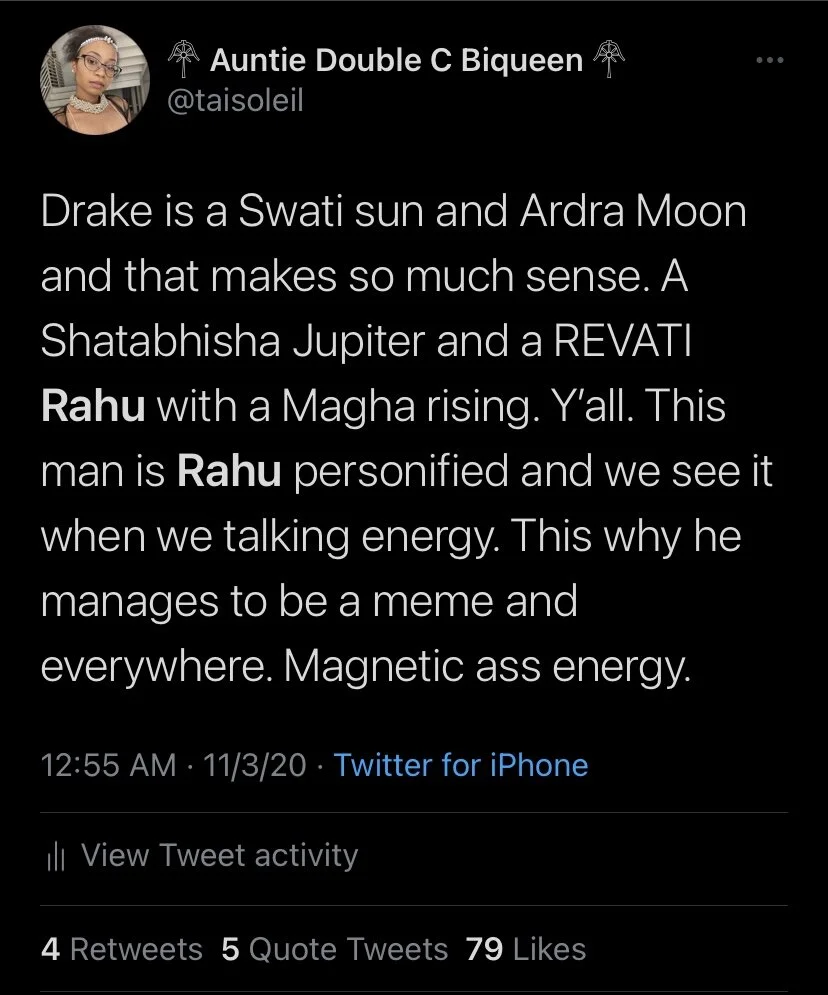 Long overdue! I had to take some time to myself. A lot of changes have happened in my life. Let’s get into the astrology of Drake tho. Many of you have seen me talk about him specifically if you’ve seen me on Clubhouse or on Twitter before my suspended what I covered. This guy has a very interesting astrological background that has also later helped me strengthen some of my thoughts about Rahuvian energy.